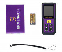 Корпус лазерной рулетки Ermenrich Reel PRO GM60 эргономичен и компактен, кнопки управления хорошо подходят для работы одной рукой. В памяти устройства сохраняется до 100 групп измерений и расчетов, на ЖК-экран выводится одновременно 4 строки числовых данных. Режимы экономии энергии (автоотключение лазера и прибора в целом) обеспечивают экономию заряда батареек. Одного комплекта достаточно для 5000 и более измерений. Рулетку легко настроить под запросы пользователя: доступны выбор режимов замера и единиц измерения, беззвучный режим работы и другие опции.